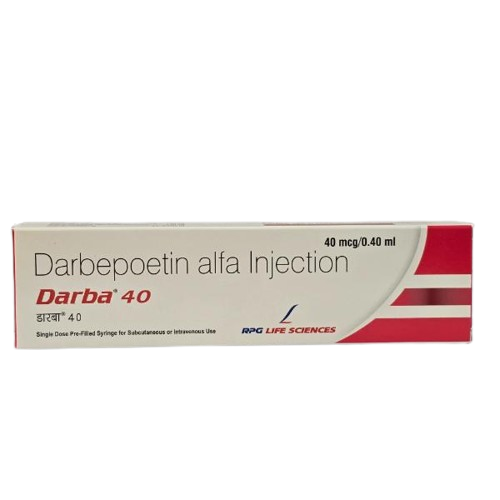 Darba 40mcg Injection is used in the treatment of anemia that may have occurred due to chronic kidney disease or chemotherapy. It works by stimulating the bone marrow to produce more red blood cells.