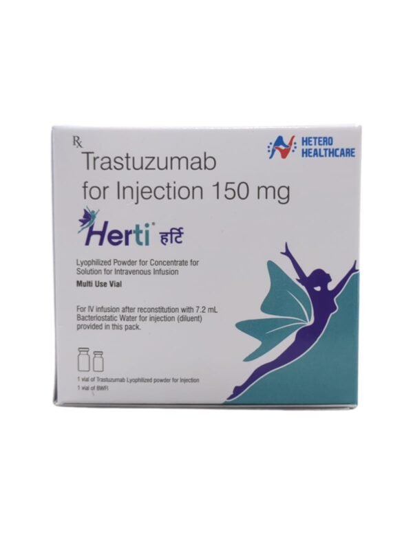 Herti 150mg Injection is used in the treatment of breast and stomach cancer. It works by killing the cancer cells by inhibiting HER2 (human epidermal growth factor receptor protein).