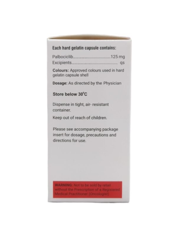 Breast cancer occurs when abnormal cells in the breast grow uncontrollably and can spread to surrounding tissues or other parts of the body. Piclib 125mg Capsule helps slow the growth and division of cancer cells, allowing healthy cells more time to recover. This supports better disease control, helps manage symptoms, and can improve treatment outcomes when used as part of a prescribed cancer therapy plan.