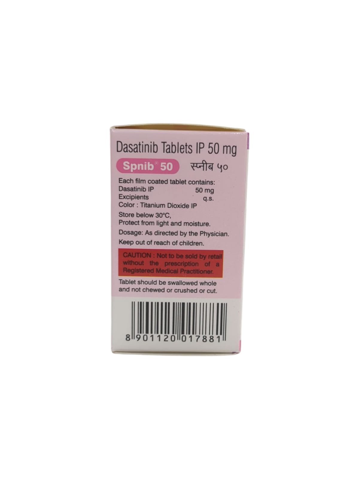 Spnib 50mg tablet is used in the treatment of blood cancer (chronic myeloid leukaemia). It is used in patients whose disease could not be treated with other medications for leukaemia or who cannot take these medications because of side effects.